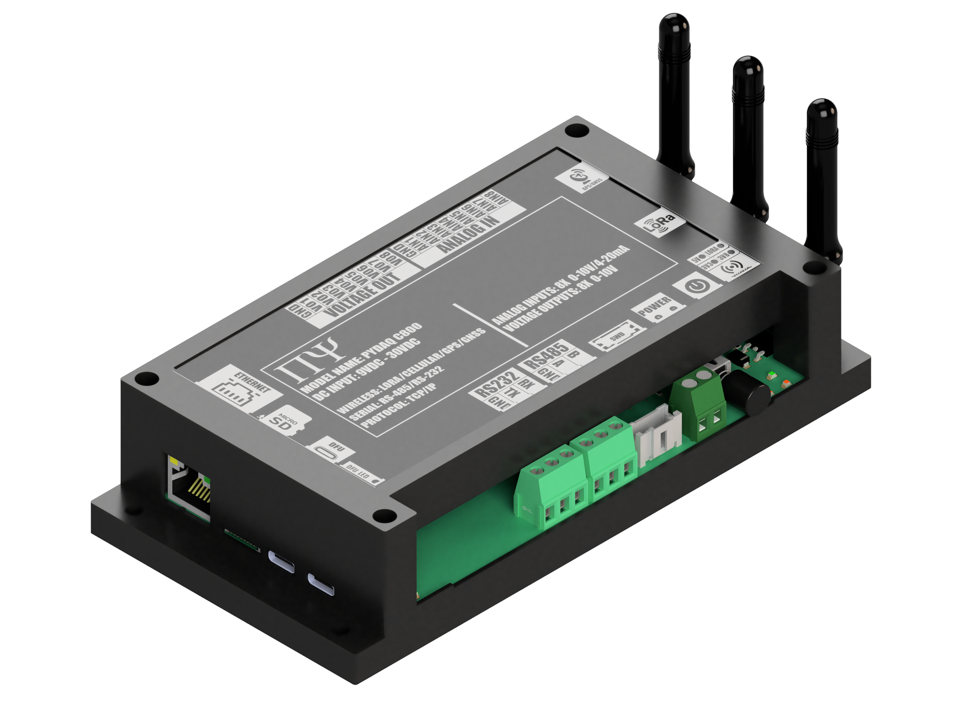 Pydaq C800 is a wireless 8-channel Analog Input and 8-channel Voltage Output Remote Terminal Unit (RTU) designed for seamless integration with 4-20mA and 0-10V sensors, as well as 0-10V actuators. This versatile device allows for efficient data acquisition and control, providing compatibility with a wide range of sensor and actuator interfaces. Raw data collected from the sensors can be processed by PytroAI Edge Computing Engine embedded into the device. Processed data can be accessed via several wired communication options using RS-232 and RS-485 Modbus RTU and using Modbus TCP over Ethernet.